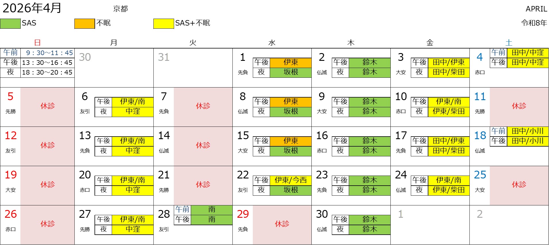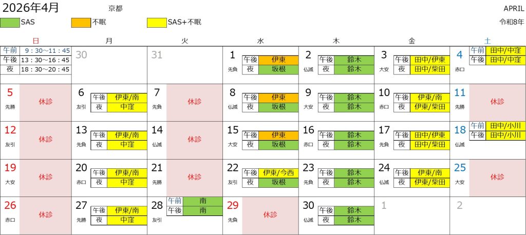 2026年4月の診察スケジュールです